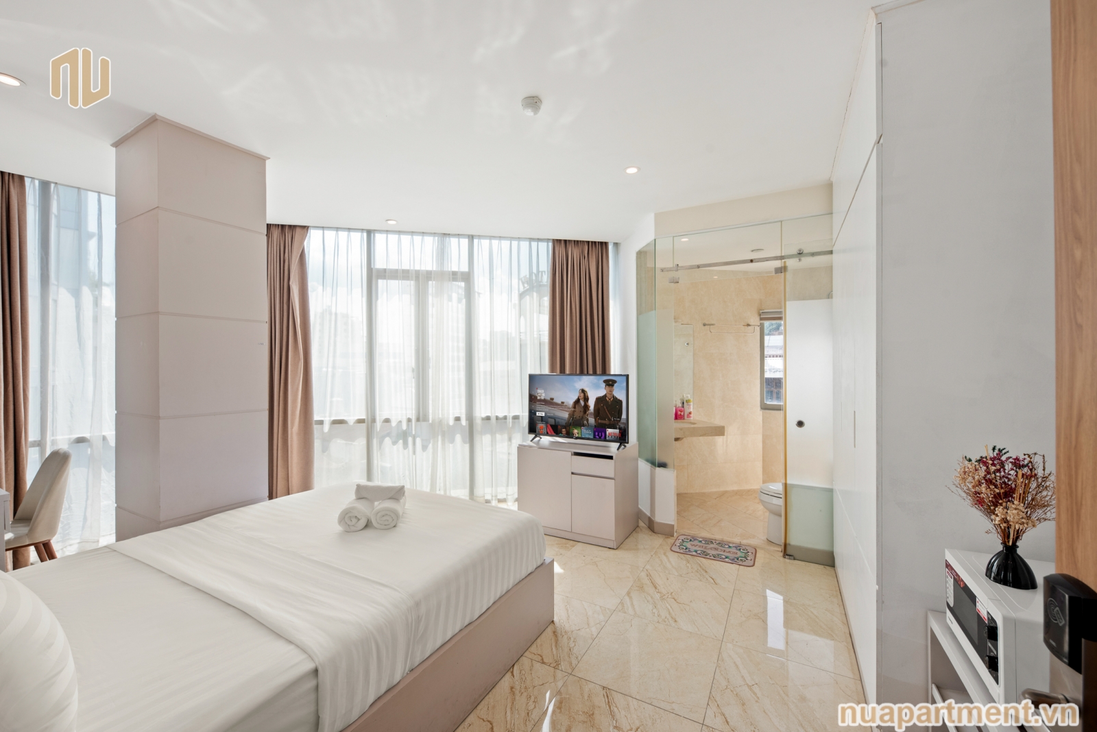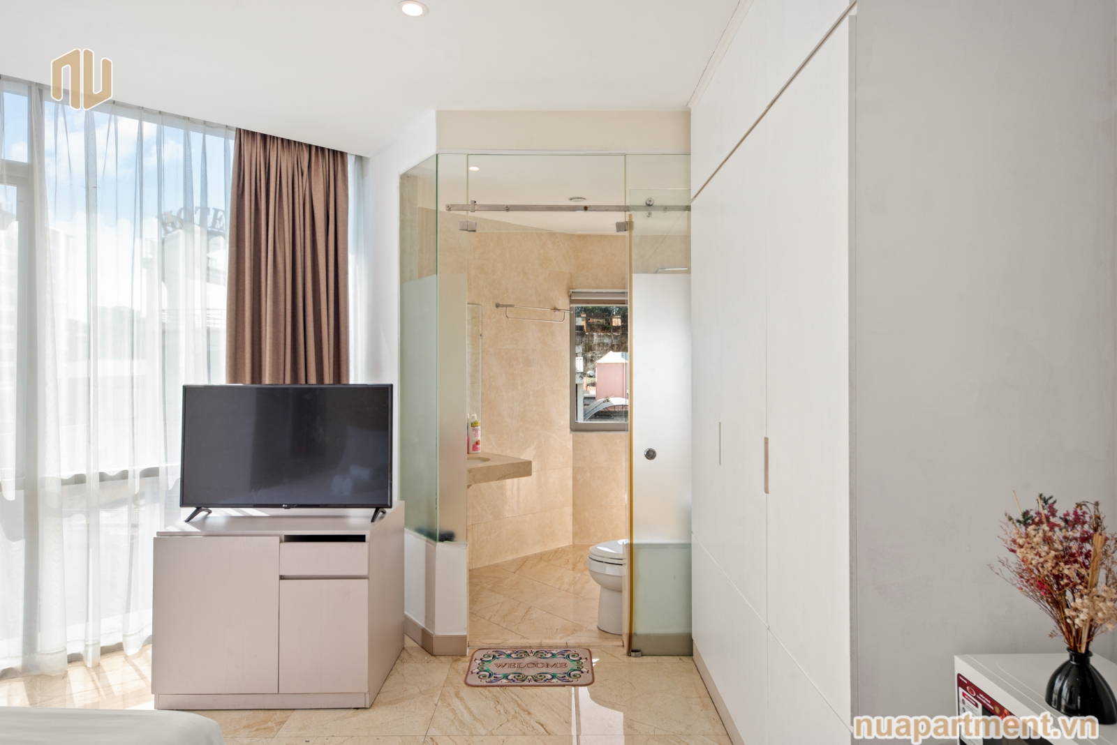 CĂN HỘ: NU-LÝ TỰ TRỌNG-1PN-KHÔNG BẾP-2GIƯỜNG